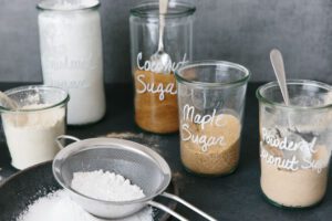 - Luego agregamos el polvo para hornear y el bicarbonato de sodio, también tamizados y revolvemos.