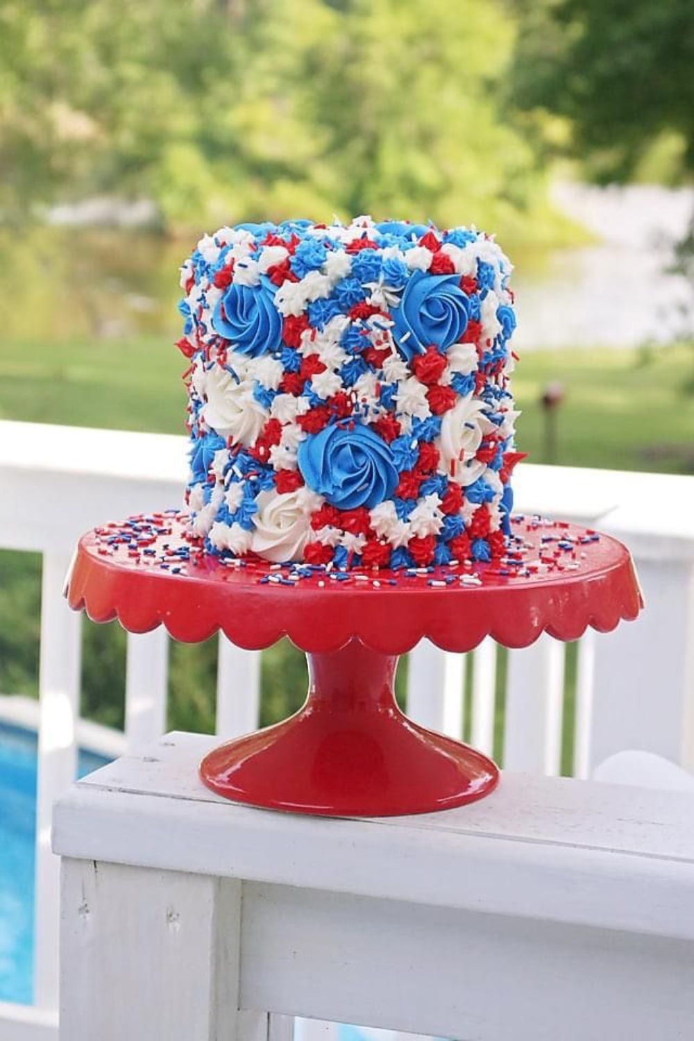 Pastel con Sprinkles de Estrellas Rojas, Blancas y Azules