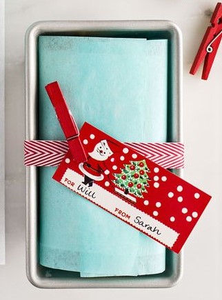 Podemos hacer un lindo arreglo para regalar estas galletas de pastel de frutas, sólo envolvemos las galletas en papel encerado y después en papel de regalo o de seda y les ponemos un lindo listón para finalmente ponerlas en una cajita! O bien forramos un mini molde de pastel, con papel de seda y luego papel encerado. Añadimos las deliciosas galletas de navidad de pastel de frutas, doblamos el papel para cubrir las galletas, luego envolvemos con cinta y pegamos una tarjeta con una bonita pinza.