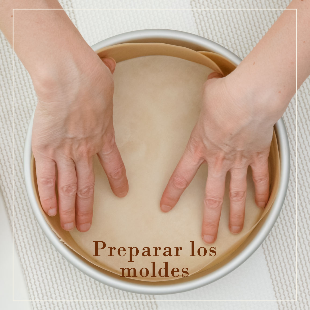 - Prepara tres moldes de 8 x 2 in o 2 de 10 x 2 in, con manteca vegetal y harina o bien puedes usar papel pergamino en la base y engrasar las paredes de los moldes.